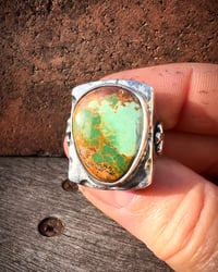 WL&A Handmade Royston Earthy Green Thunderbird Signet Ring - Size 10.5