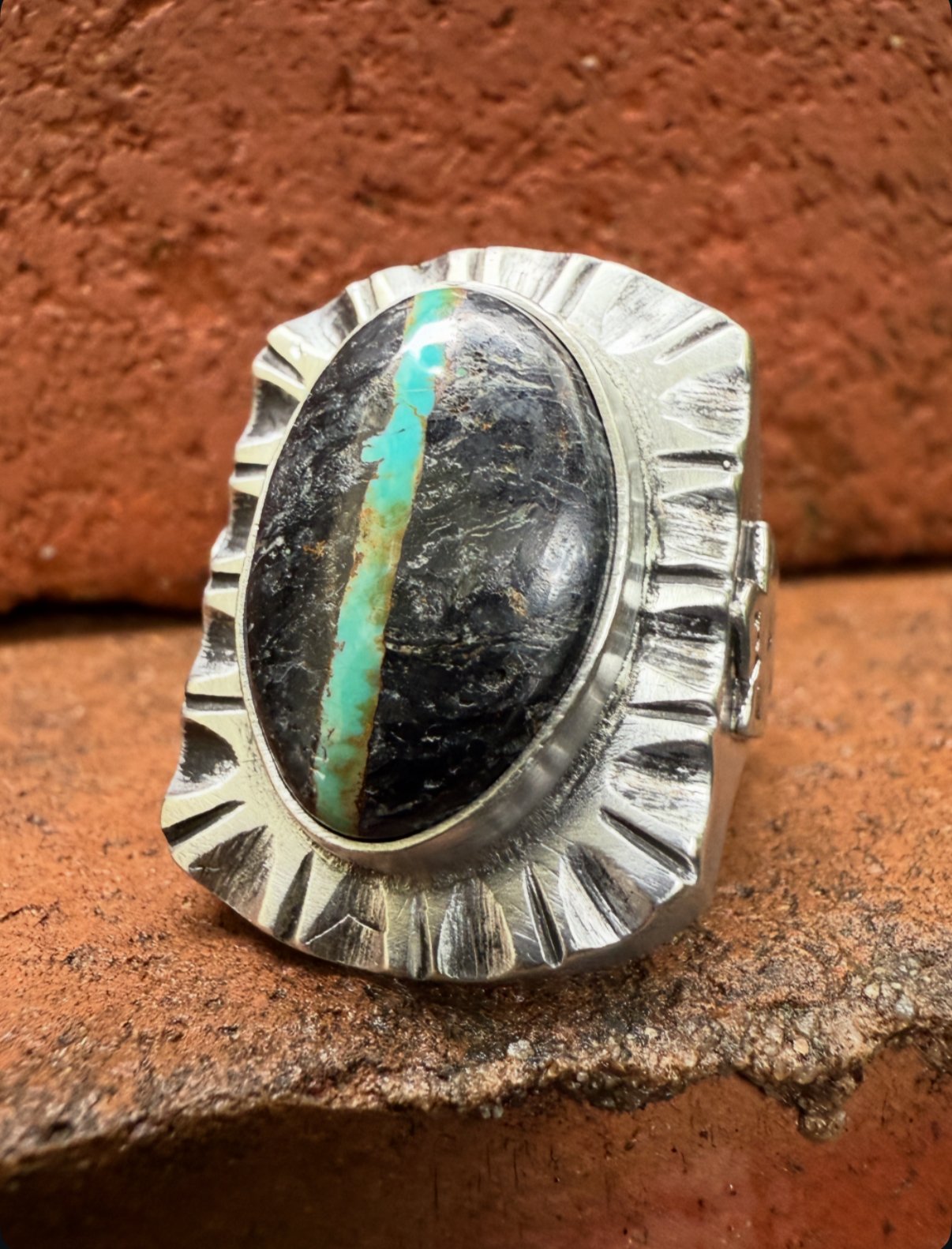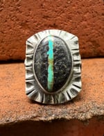 WL&A Handmade Black Jack Ribbon Turquoise (NV) Heavy Signet Thunderbird #1 Ring - Sizes 10