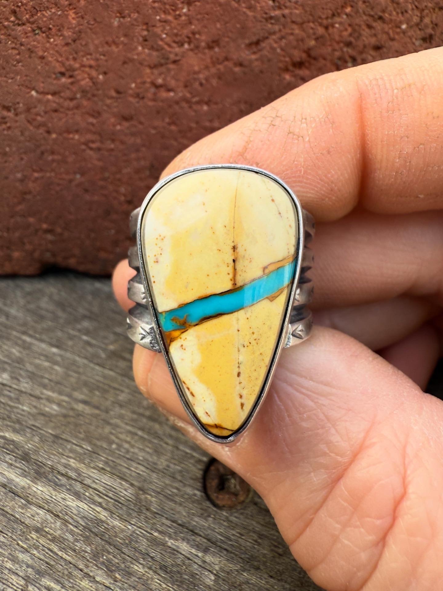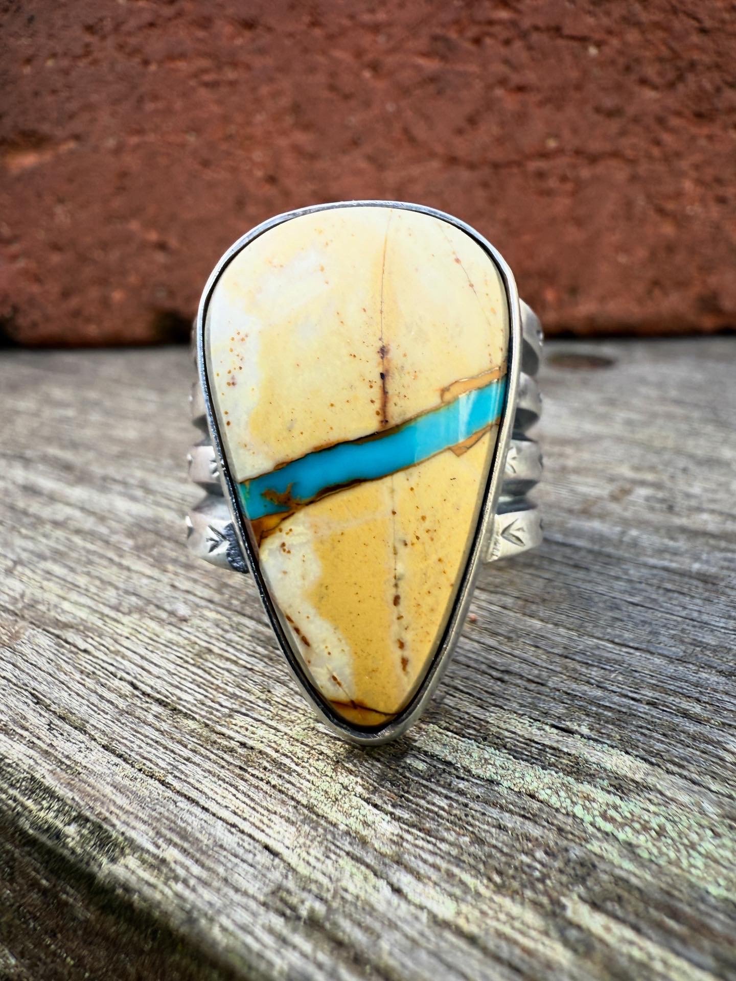 WL&A Handmade Heavy Ingot Cuatro Royston Ribbon Tear Turquoise Ring - Sizes 10