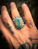 Handmade new style heavy Signet ring made with Repurposed 1890's 925 Sterling Silver, crowned with a High Grade American Turquoise. Chunky, Old school & built to last generations!