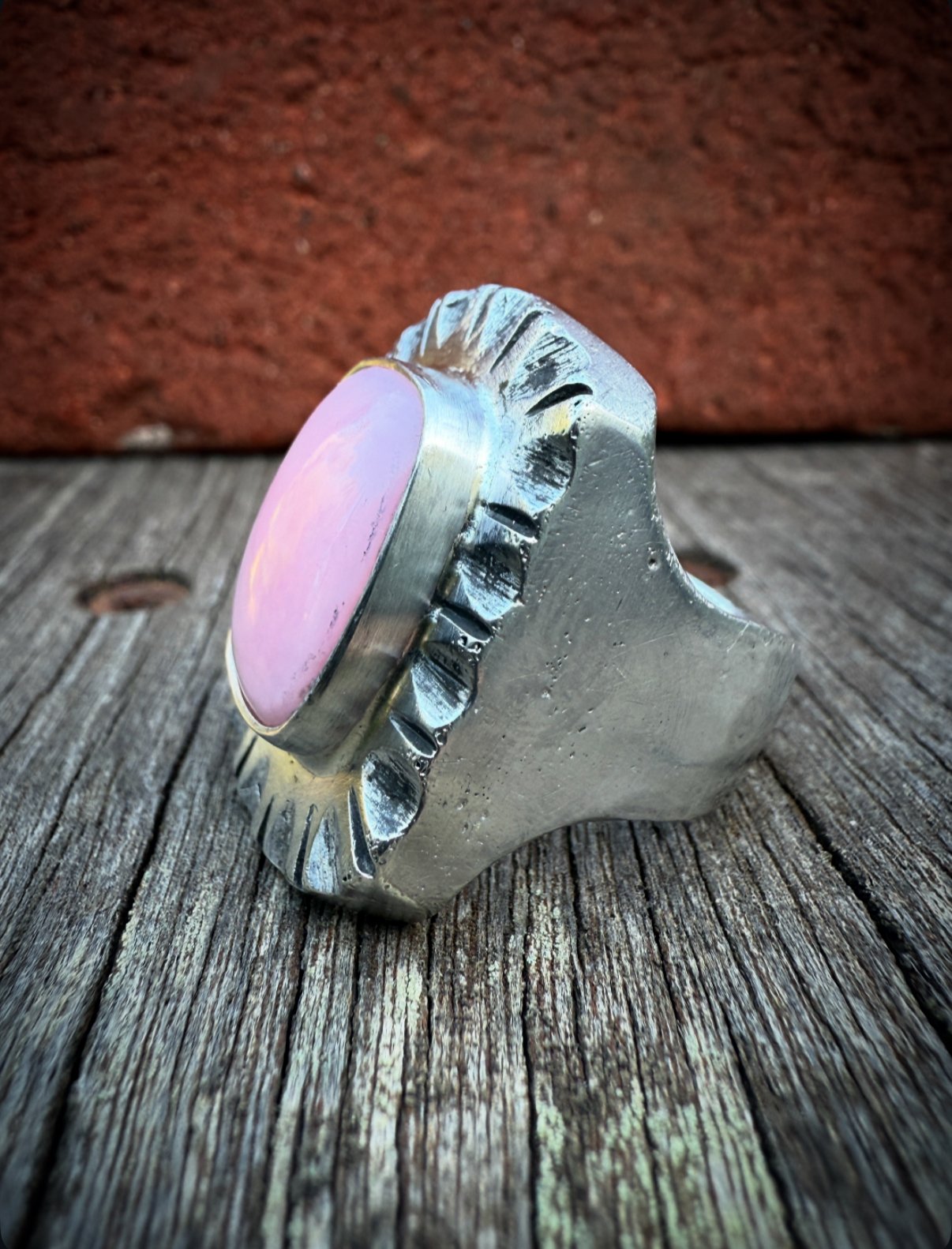 WL&A Handmade High Grade Pink Opal Heavy Signet Ring - Size 11