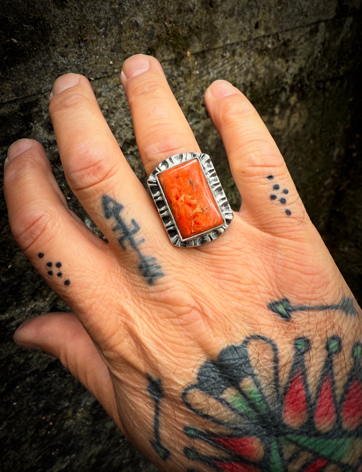 WL&A Handmade High Grade Sponge Coral Heavy Signet Ring - Size 10