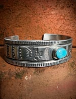 WL&A Handmade Ingot Old Style Sierra Bella Turquoise Thunderbird Cuff #1 - Size 7" to 7.5" Wrist