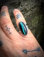 WL&A Handmade Ingot Old Style Split Band Black Jack Blue Ribbon Turquoise Ring - Size 7