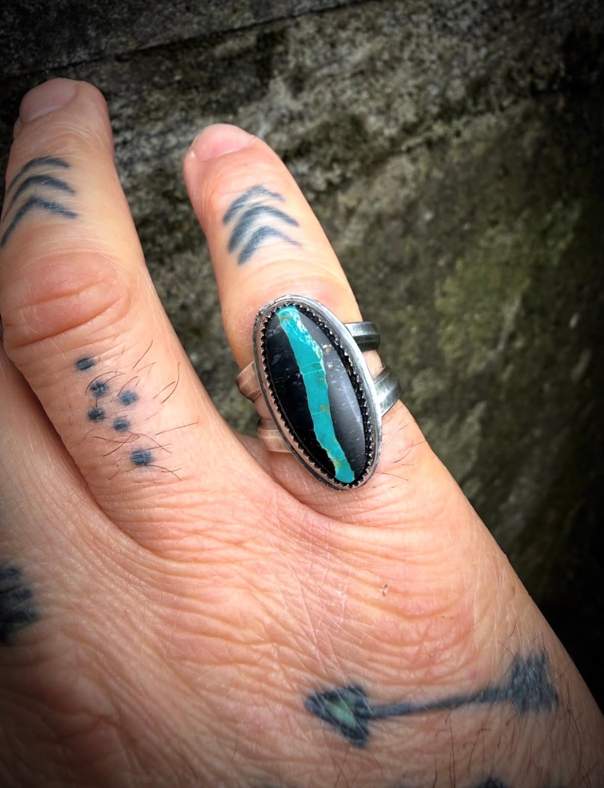 WL&A Handmade Ingot Old Style Split Band Black Jack Blue Ribbon Turquoise Ring - Size 7 - Available Website Profile Link