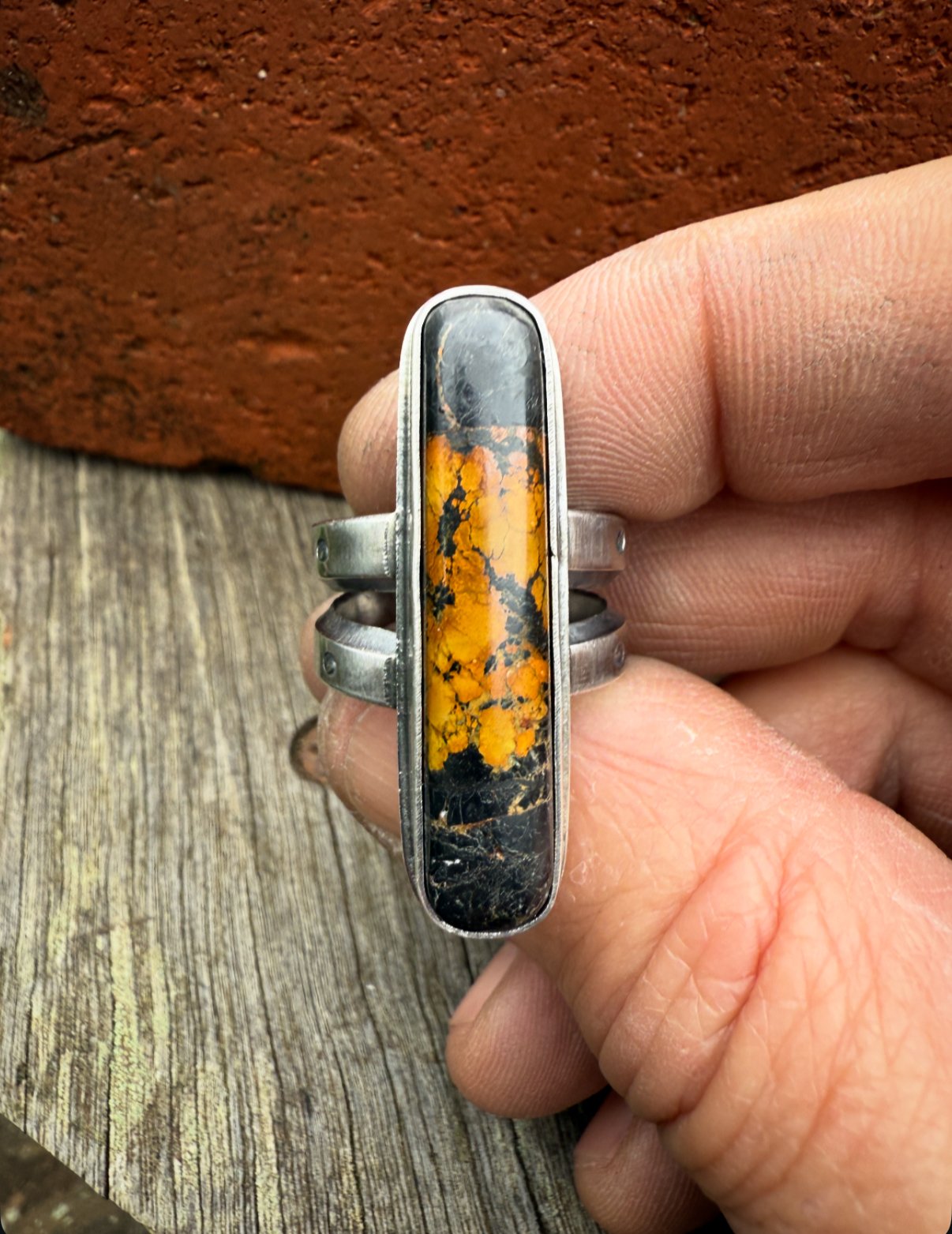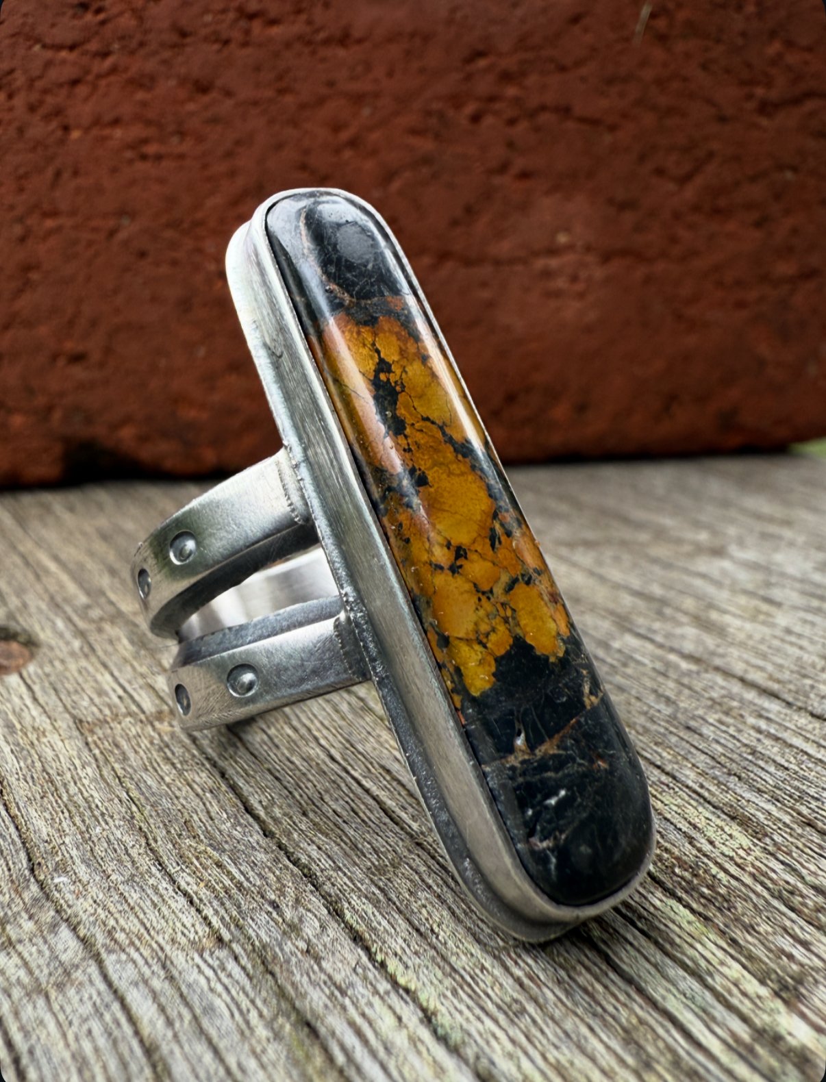 WL&A Handmade Ingot Old Style Split Band Black Jack Ribbon Turquoise Ring - Size 8