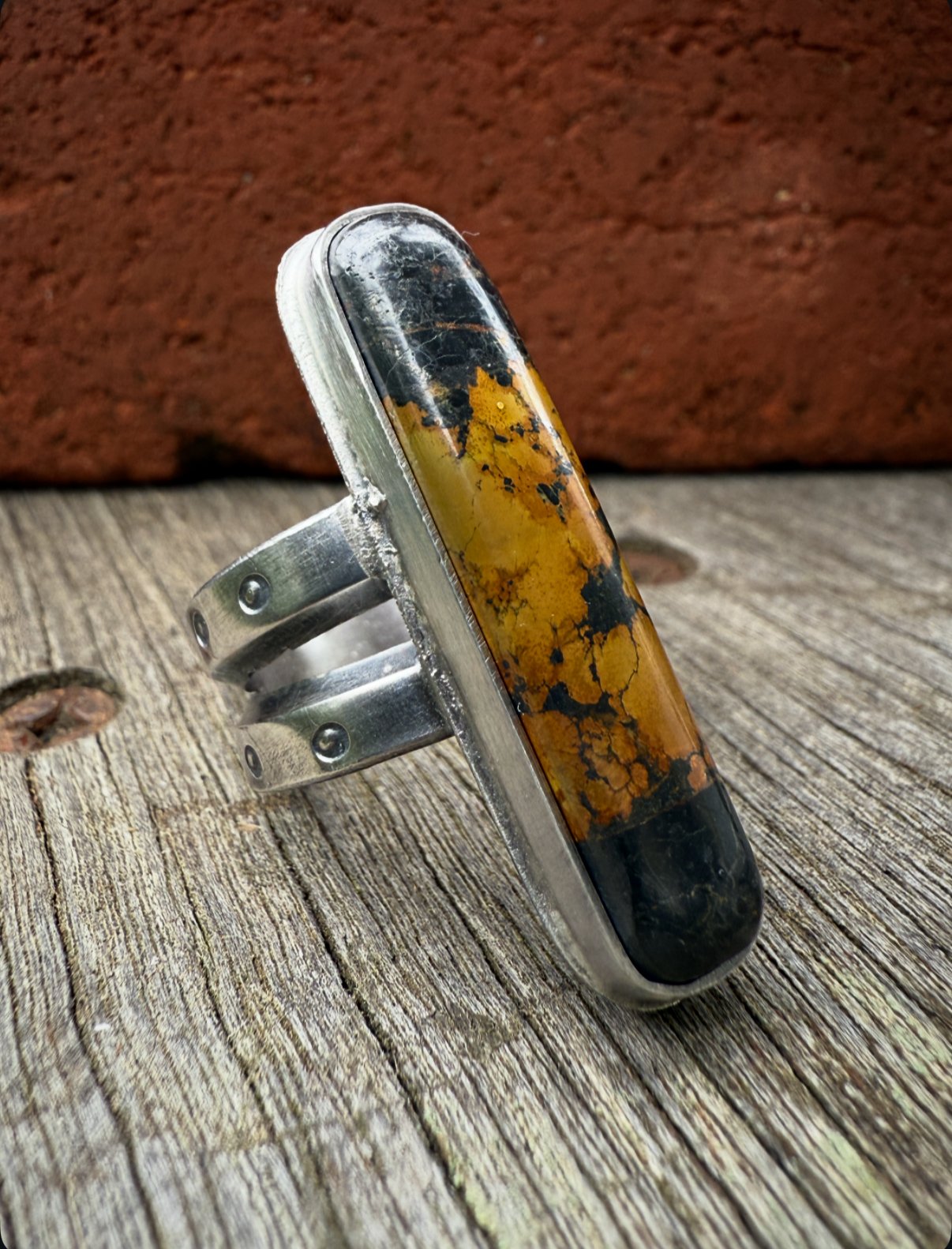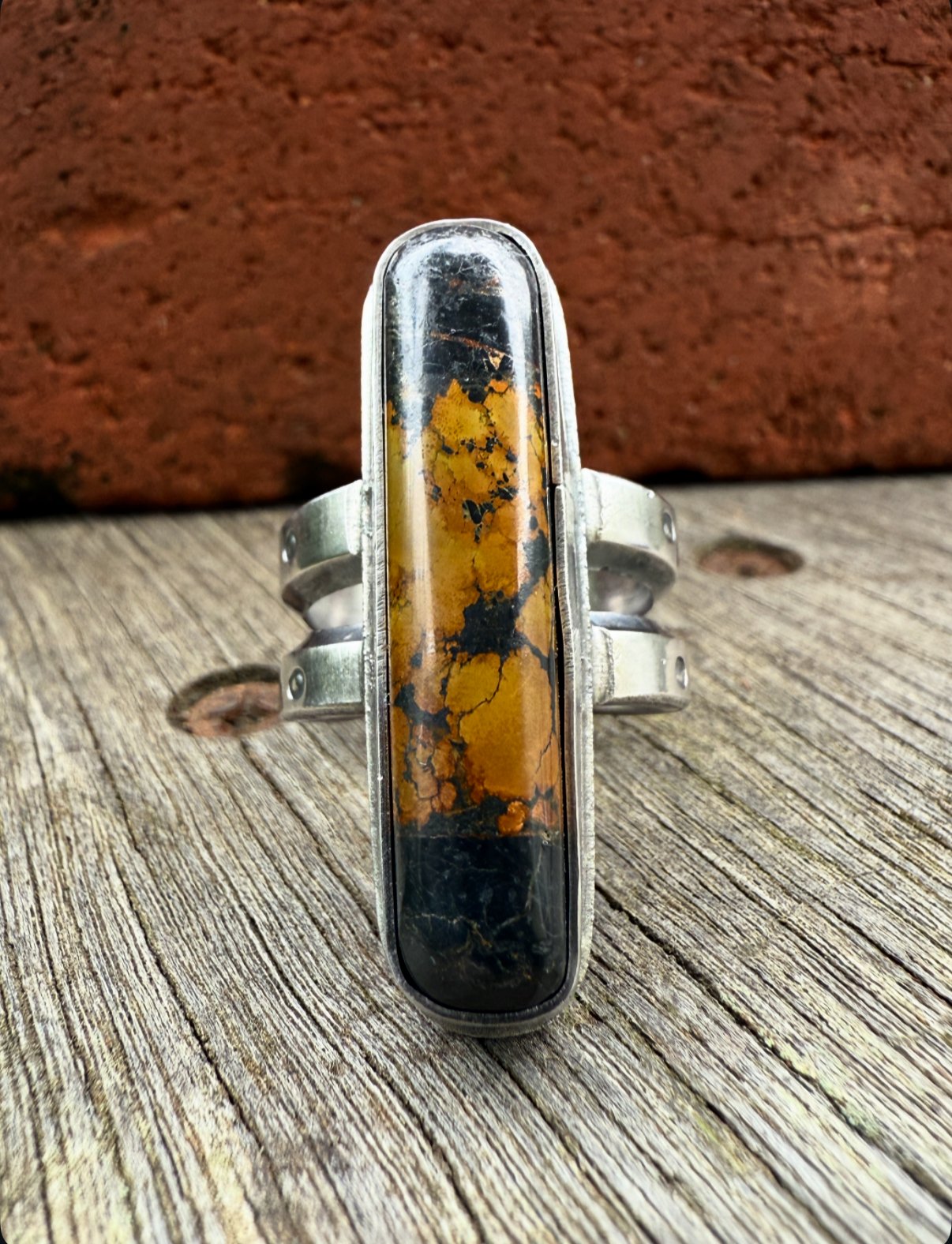 WL&A Handmade Ingot Old Style Split Band Black Jack Ribbon Turquoise Ring - Size 8.5