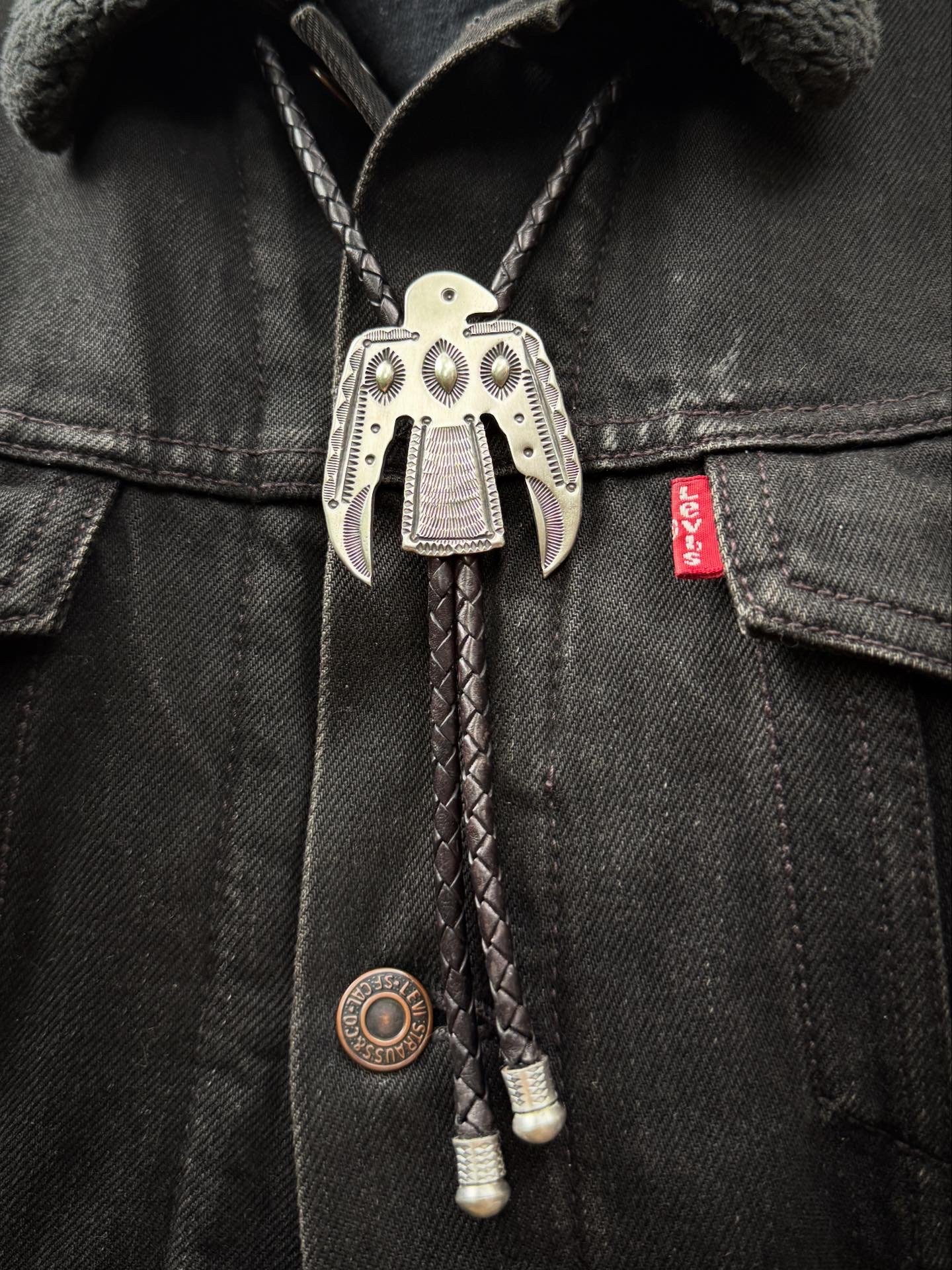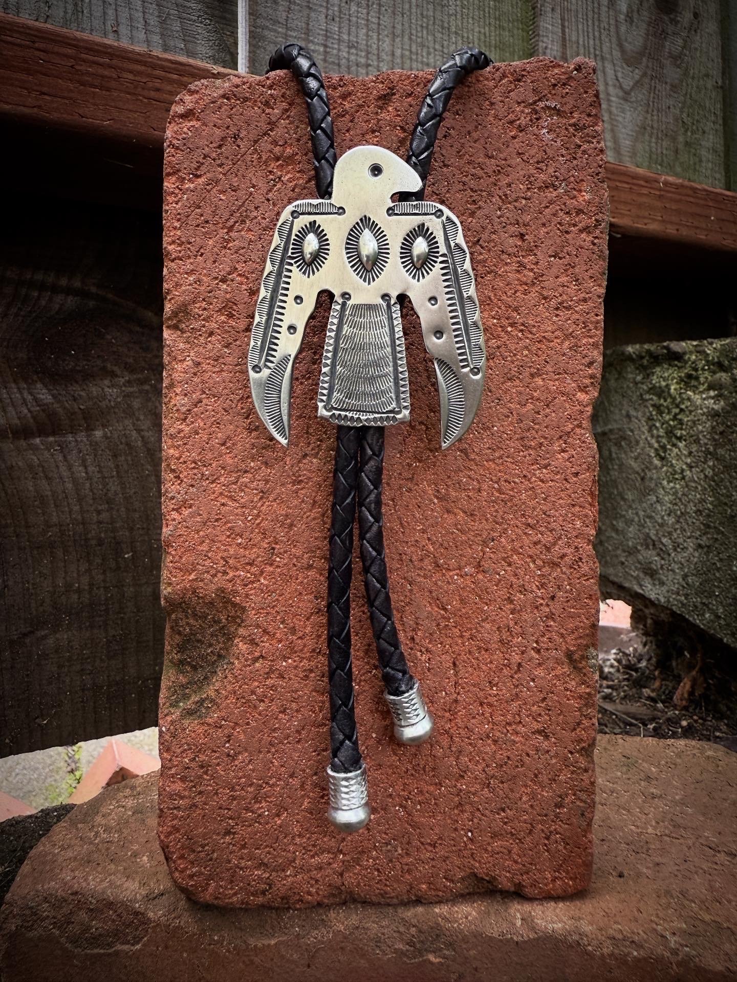 WL&A Handmade Ingot Repousse Thunderbird Bolo Tie