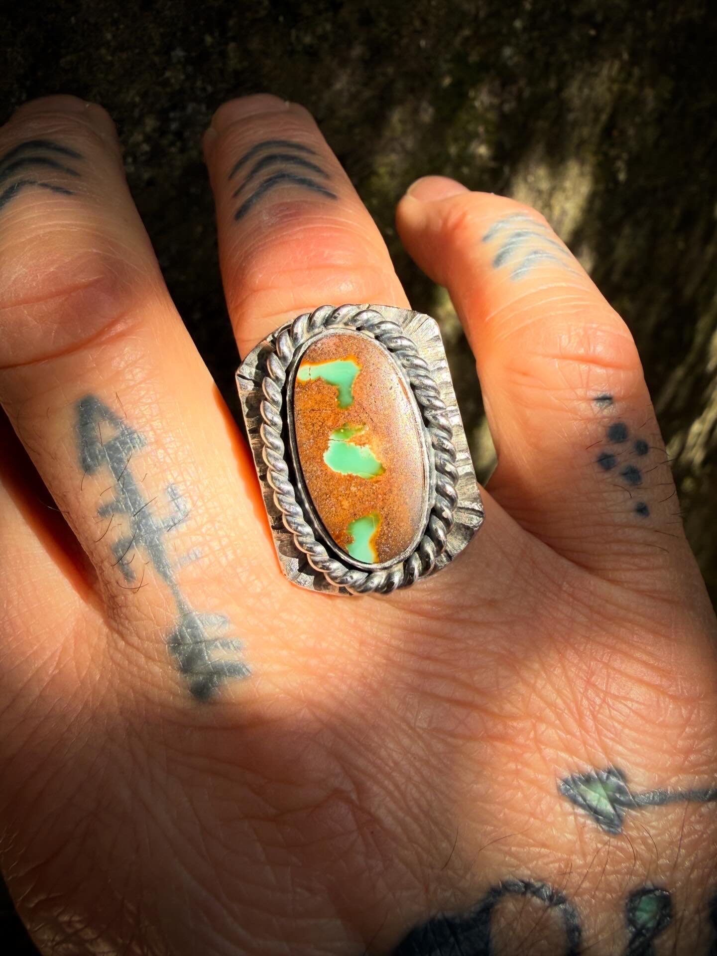 WL&A Handmade Natural Earth & Forest Green Ribbon Turquoise Signet Rings - Size 10 (available website profile link)