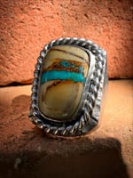 WL&A Handmade Natural Royston Deep Blue Ribbon Turquoise Signet Rings - Size 10