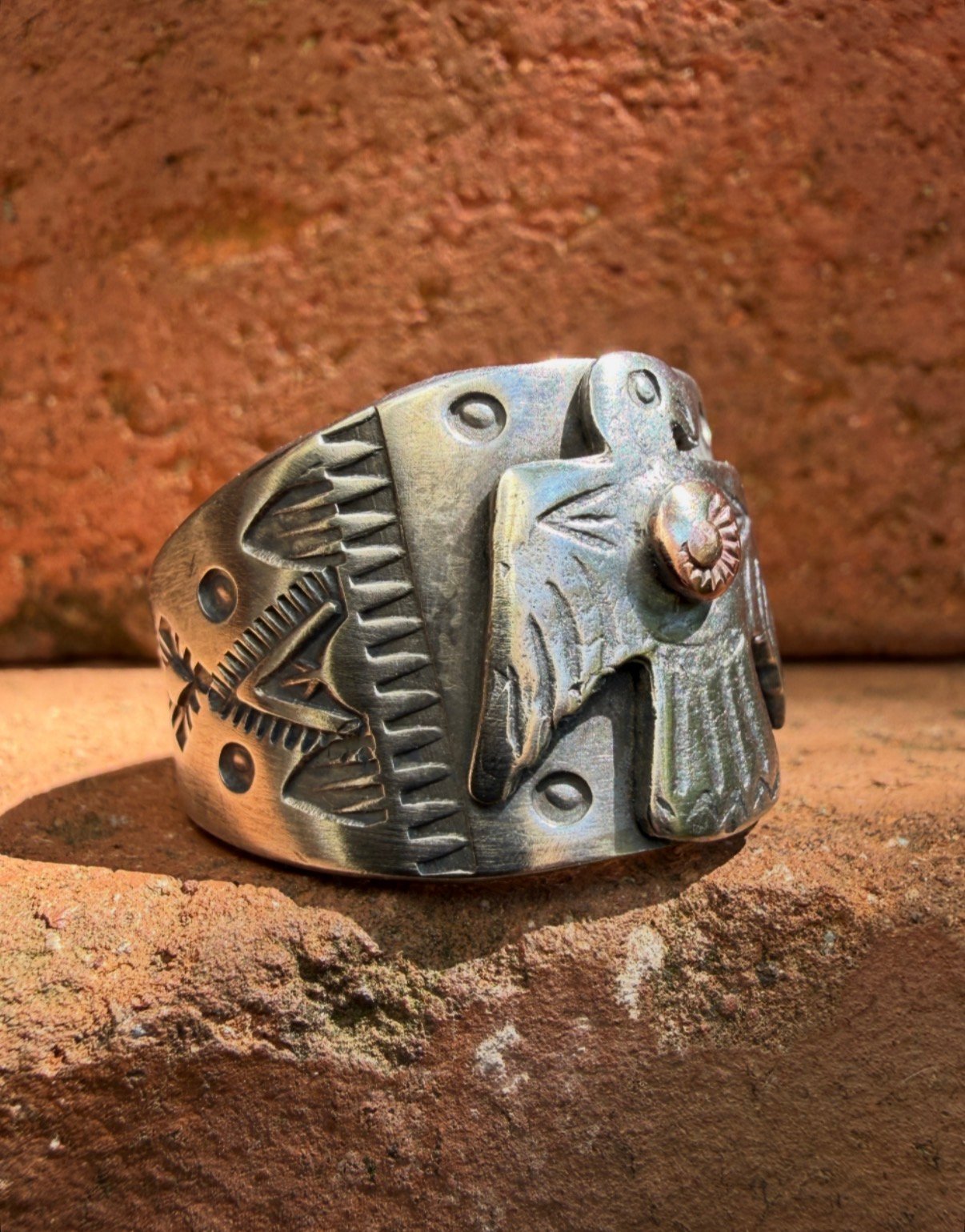 WL&A Handmade Old Style Heavy Ingot Thunderbird Medicine Ring - Size 11