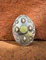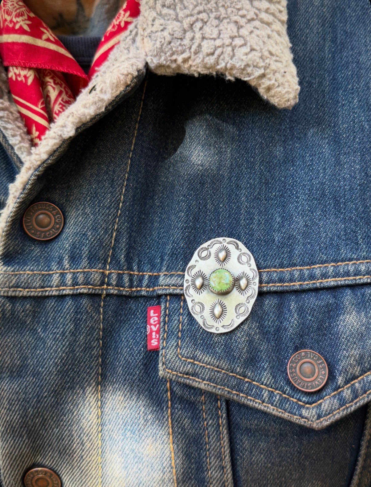 WL&A Handmade Old Style Repoussé Coin Pin - Carico Lake Turquoise - Size 1.75" x 1.25" (2)