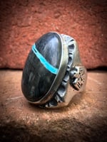 Handmade heavy New WL&A Signet ring made with Repurposed 1890's 925 Sterling Silver, crowned with a High Grade American Turquoise & layered with sterling Thunderbird badge. Chunky, Old school & built to last generations!