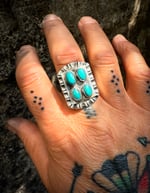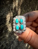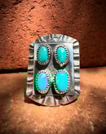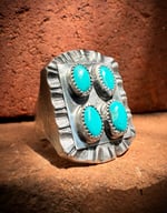 Handmade old style heavy signet ring made with repurposed 1890's 925 Sterling Silver, layered & crowned with four (4) Royston Turquoise Rows. Extra chunky, old style & built to last generations!