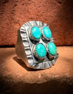 Handmade old style heavy signet ring made with repurposed 1890's 925 Sterling Silver, layered & crowned with four (4) Royston Turquoise Rows. Extra chunky, old style & built to last generations!
