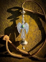 WL&A Handmade Royston Medicine Bird Pendant w/ rotating Walking Liberty Half Dollar Pearl - Size 5in x 1.6in (available website profile link)